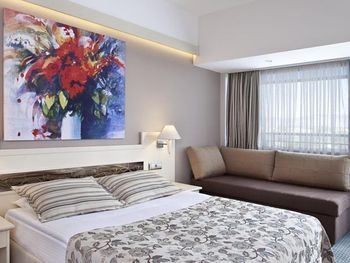 Невкусная еда. Возможно из за огромного кол-ва народа. Все делается ради того, чтобы просто набить живот. Номер грязный, очень влажный. Постельное белье мокрое все время от влаги. Море грязное. Купаешься как в луже((( Ищите за эти деньги другие варианты.
