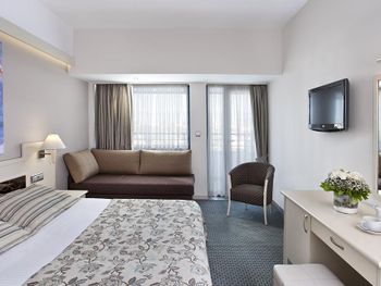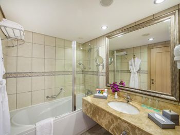 Номер очень старый , обшарпанный , запах в номере стоит сырости, старые кондиционеры, при включении - течёт вода. Кафель весь потрескавшийся. Ночью дверь балкона не открыть - залезает и залетает всякая живность- очень некомфортно особенно с маленькими детьми. Очень сильная шумность - стены и двери тонкие - любой шорох на улице как будто внутри номера…