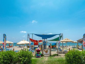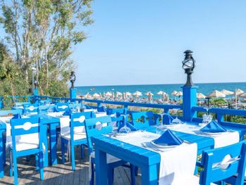 Очень огорчило грязное море чуть ли не каждый день,мы не могли купаться. Отдыхающим с детьми следует учитывать,что море резко и очень быстро глубокое,оттого почти всегда большая волна возле берега. Разочаровал Детский клуб,плохая площадка при клубе и вообще для детей только одна маленькая детская площадка с качелей на территории и одна на пляже,нет соков и молока в маленьких пачках для детей.Больше всего разочаровала уборка номеров,а вот гостевой сервис работает хорошо и по всем вопросам сразу стараются помочь.Нет утюга и не дают,только предлагают услуги глажки за деньги.