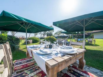 Отель в целом понравился, самый главный плюс это большая и прекрасная территория, по которой можно гулять целыми днями. На территории отеля расположен ботанический сад с разными видами растительности, очень красиво и полезно погулять по такому саду. Море понравилось, но вход в море галечный и резкий, желательно заходить в специальной обуви для плавания, иначе неудобно и резкий обрыв глубины скорее всего не подойдет для купания с маленькими детьми. Но в целом впечатления от отдыха в отеле очень позитивные, персонал старается, аниматоры развлекают, вечерние шоу тоже понравились, но есть большой минус с едой.