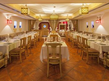 У головному ресторані сервірують "шведський стіл" на сніданок, обід і вечерю. У ресторанах з обслуговуванням по меню подають вишукані страви мексиканської, індійської, російської, японської і середземноморської кухні, а також страви з морепродуктів. Крім цього, у курортному готелі працюють 7 барів.