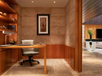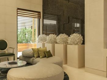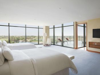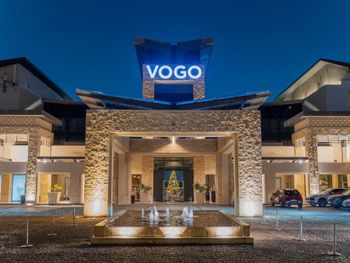 Views of the on-site golf course can be enjoyed from all VOGO’s open-plan rooms, which come with a flat-screen TV and Nespresso coffee maker. They have large floor-to-ceiling windows, luxurious bedding and a private bathroom with a separate bathtub and shower.