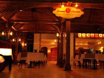 Новогодняя ночь не оправдала мои ожидания. Очень не удобно стоят ряд столов в главном ресторане, сидеть не удобно узко. Стоит запах гари в общем зале.