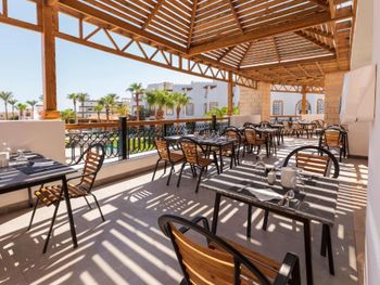 Очереди в столовую, лучше приходить в открытию. Фрукты разбирают в течении первых 10 минут. Своей территории считай что нет. Очень каменистый заход в море, комфортно только с пантона. Пляж маленький, все места вокруг пантона занимают уже с раннего утра. В отеле напротив пляжа-Sunrise Remal Beach продолжали ремонт, шумели днем перфораторами.