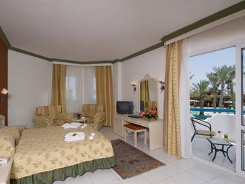Заезжали ночью,не сразу смогли найти корректное бронирование, но заселили без проблем, на утро нашли все детали и выдали браслеты. Предложили трансфер за 30 д., мы отказались, т.к. отель очень близок к аэропорту. На месте поймали такси на 10 д. и то, я считаю, это дорого за такое расстояние. За доплату в 20 д. дали номер с террасой, на 1 этаже (что нам было удобно), с выходом напрямую на большой бассейн. Это было очень удобно, т.к. и в столовую и на бассейн идти было очень близко. Номер был опрятный, в целом все соответствовало, большой.