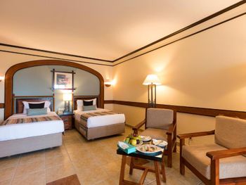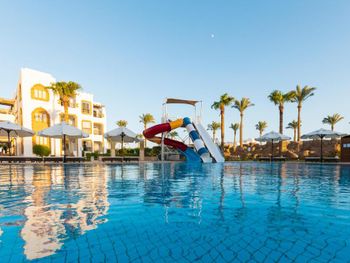 Нас заселили в номер с двумя отдельными кроватями, консьерж сразу предложил сдвинуть кровати, в итоге нам их сдвинули к ночи только после третьей просьбы. Досуг я не могу назвать качественным. Шоу и анимация для меня оказались низкого качества. Шведский стол хороший, но не более того. Столы довольно однообразны, закуски странные, тортики отличаются только по цвету, но не по вкусу. Фрукты часто жухлые. Хороша была египетская кухня в главном ресторане. Аля карт рестораны -- смех. Пришли в индийский ресторан, но индийской кухни мы там не увидели. Странная вариация на тему, но не более. Вместо панира был мягкий египетский сыр. Соусы жидкие и совсем не похожи на тикка масалу и баттер масалу. Ещё больше меня неприятно удивил египетский ресторан. Мы заказали салат фаттуш, но я в фастфуде ела вкуснее... Просто насыпали нарезанных овощей в крохотную мисочку. Козлиный шашлык ничем не примечательный, просто мясо с рисом. Еду несли целый час. Десерты только после трех просьб. Возможно, отель и предлагает какой-то досуг, но меня он не устраивал, мне заняться было нечем. К сожалению, погода в январе сильно подвела, четыре дня из пяти дул сильный ветер, в море удалось поплавать один раз. Не знаю, чего я ждала от такого отеля. Расстроил платный спа по весьма недешевым ценам процедур. Свежевыжатые соки по пять долларов за стакан. А бесплатно дают даже не пакетированные соки, а порошковые. Кофе только растворимый в главном ресторане. Вареный можно взять отдельно в баре. В отеле действительно есть всё, что заявлено на сайте, а качество... не знаю. Наверное, это просто не мой формат отдыха. Людям нравится.