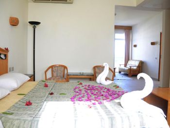 Отель очень понравился,прекрасный клиентоориентированный персонал,приехали утром,сразу отправили на завтрак,заселили раньше положенного времени,номер хороший,кровать очень удобная,вайфай ловит на всей территории,бассейн тёплый, питание хорошее,возили на автобусах в соседний отель на шоу,также в отеле по вечерам есть развлечения,остались очень довольны отдыхом,уезжать не хотелось.Спасибо большое!