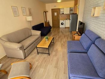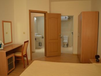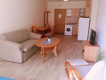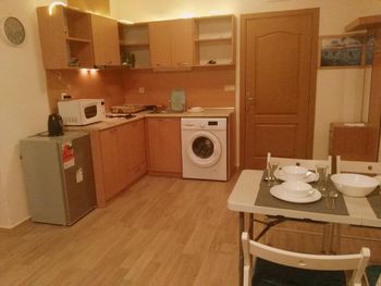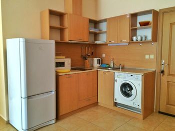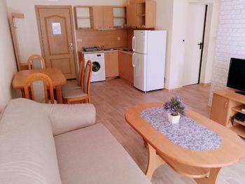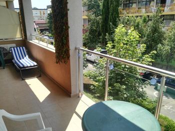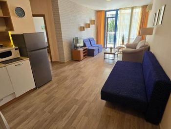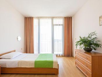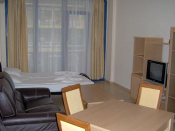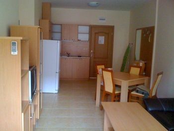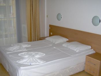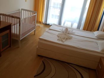 Жили в апартаментах 4 - ом. 2 взрослых и дети - 4 и 13 лет. Две большие комнаты, 2 сан узла. Огромная терраса. Есть шезлонг - очень неплохо было позагарать в обеденное время)))). Никто ни кому не мешал. Постель чистая. Есть стиральная машина. Апартаменты находятся на территории отличного отеля. Хорошие бассейны, горки. Детская анимация. Мы питание не брали. Питались сами. В шаговой доступности супермаркет. Кафе, где по домашнему вкусно и не дорого. До моря минут 5-7 ходьбы. Хозяин - константин очень приятный. Сломался бойлер - через 20 минут приехал с техником и все исправил. С интернетом тоже проблем не было. В общем, Константин, в следующем году мы к вам!!!