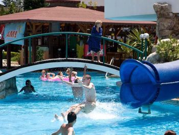 Семья из 5 человек.Мы проживали в частном номере от собствеников.Аниматоры работали хорошо всё время были разные конкурсы и развлечения для детей и взрослых.По вечерам танцы.Детям понравились горки.Територия гостиницы чистая и ухоженная.Лобби и общественные туалеты всё время чистые.