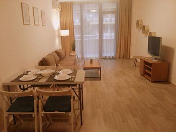 Помешкання Apartment in Trakia Plaza з чудовим видом на сад розташовано в місті Сонячний Берег. До послуг гостей ресторан, дитячий клуб, бар, сад, сезонний відкритий басейн і тераса. На території помешкання до розпорядження гостей приватна парковка, а також доступний безкоштовний Wi-Fi на всій території помешкання.