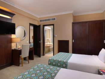 Приезжали на денек по делам и отдохнуть заодно, мы приехали рано утром и, несмотря на заселение в 15 00 нас заселили на 4 часа раньше, а это было просто замечательно потому что в 42 градуса очень хотелось попасть под кондиционер и сбросить тяжелые рюкзаки. Отдельное спасибо Ахмеду с ресепшн, очень выручил и добавил сразу много плюсов к восприятию отеля. Номер - просто отличный, по просьбе и халаты принесли, а уж как здорово встречать в отеле не душ, а полноценную ванну! Я была в восторге. Ну, и бассейн еще теплый, вода словно обнимает тебя. Класс.