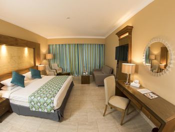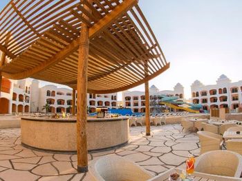 Второсортная однообразная еда, могут позволить себе выложить на завтрак вчерашние помидоры с привкусом гнильцы. Чистота в зоне питания соблюдается плохо. Альтернатива в виде сторонних заведений отсутствует, вокруг обман и наценка за отвратное качество. Алкоголь в баре местный, наливают коктейли совершенно рандомно, алкоголя может не оказаться вообще, а может быть половина ёмкости. Пиво могут налить безалкогольное, а могут и нет. Спасает пиво из магазина. Интернет никакой, и это в отеле 5*. По просьбе пришли что-то сделать, но лучше не стало. Постоянно отваливается и в номере уровень сигнала минимальный. Пляж отеля тесный и маленький как загон для скота, вода грязная. Лежаков не хватает. Вечером идёт обзвон с вопросами все ли нравится, обещали репеллент от комаров, которые атакуют на балконе, так и не дождались. Полотенца с пятнами каждый день. Никому не советую этот псевдо 5*, а лучше вообще не ездите в Шарм, это хуже сочей и прочих подобных помоек.