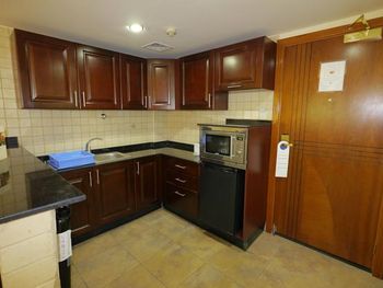 Отдыхали в отеле "Tulip Inn" в Шардже в период с 5 марта по 15 марта 2019 года. Отель заявлен как 3-звездочный, бесплатно бронировали двухместный номер-студио с большой кроватью и завтраками на booking. Оснащение номера апарт-отеля: мини-кухня с микроволновой печью с небольшой мощностью, мини-холодильник, раковина, кухонный гарнитур, чайник, столовые принадлежности на двоих (тарелки, стаканы, приборы, нож) и рабочая поверхность. Заявленная большая кровать в номере, по факту, оказалась двумя соединенными кроватями. Также в номере был телевизор (есть один канал для русских) с пультом управления, кондиционер, вместительный шкаф.