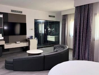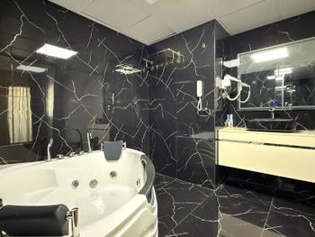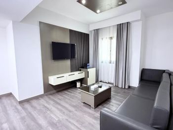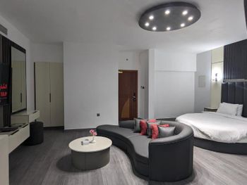 Таксисты , несмотря на счётчик нагло требуют большую сумму и легко можно попасться .А отель не так далеко от аеропорта и если бы был трансфер ,то было бы отлично.Мне обещали забрать с аеропорта,, но никто не встретил Хорошо,что скачала приложение букинг и с него позвонила в отель,где сказали водителя нет,берите такси Номер был Делюкс с кровать Кинг сайз,на самом деле оказалось две узкие кровати,разделенные тумбой когда понадобилось звонить на ресепшен из за неработающего телевизора и фена ,выяснилось,что телефон тоже не работает! В довершение лампа на прикроватной тумбе,которую я захотела включить ,с треском сгорела и заблокировала все резетки.Пришедший( улыбчивый) електрик так и не смог вставить адаптер для телефонной зарядки в сеть,я вынуждена была в 11 ночи сидеть на ресепшене ,ожидая зарядки телефона,с мокрыми волосами( помните про фен?).Окна номера выходили на ужасный дом напротив и близко Номер чистый,но немножко подертый.кровать старая ,скрипучая ,для маскировки покрытая двумя матрасами. Правда ,утюг , микроволновка и чайник работали.Персрнал- девушки очень приятные ,ну и електрики тоже.расстроили траты по такси.просто букинг пообещал в письме,а отель типа ни при чем,вам , мадам,дешевле будет такси.