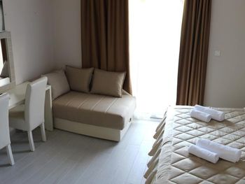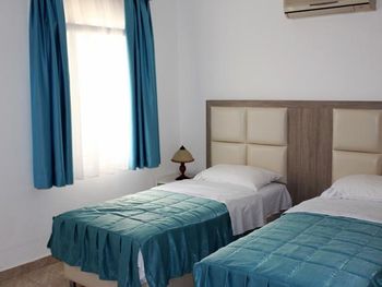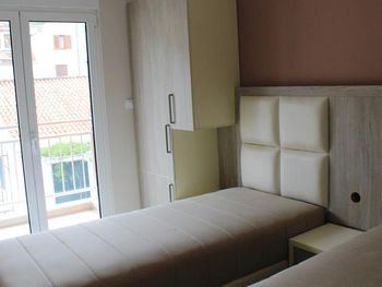 Далековато от моря, хотя и без подъёмов. Старенькие номера и кондеи. Кухни совсем нет, даже один шкаф был демонтирован.