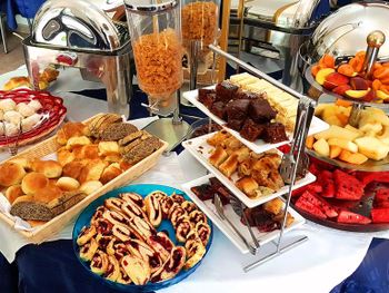 Завтраки не очень вкусные, было подозрение на отравление после первого, на второй совсем не ходили, на третьем внимательно смотрели, что берём.