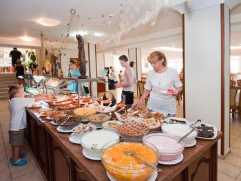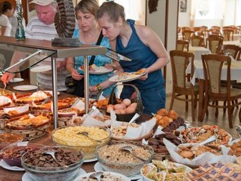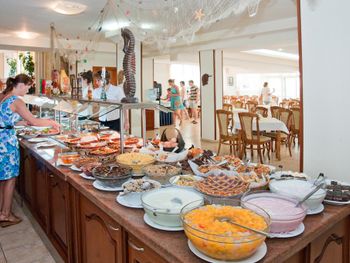 У ресторані готелю по меню і у формі "шведського столу" подають традиційні болгарські делікатеси та страви міжнародної кухні. У лаунж-барі та барі біля басейну можна замовити різноманітні напої.