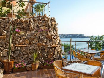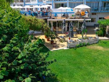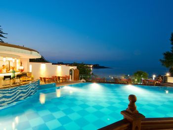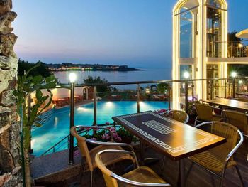 Красивый вид на море с общей террасы и ресторана. Неплохой завтрак. Симпатичный внешний бассейн, хоть мы им и не пользовались. Хороший пляж прямо рядом с отелем.