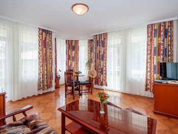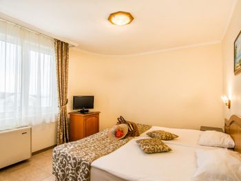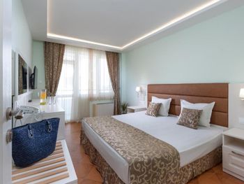 Главный минус в нашем случае - мы выбирали отель с внутренним бассейном и спа-центром. В этом отеле он есть, и мы остановили свой выбор на нем, так как море уже было холодное, но для отдыха нормального хотелось поплавать, расслабиться в бассейне. Когда приехали, я спросил про внутренний бассейн, и мне на ресепшене сказали, что он закрыт и не работает. То есть поставили перед фактом... Это стало неприятным сюрпризом, так как нас никто не предупредил, что бассейн и спа-центр будут закрыты.
