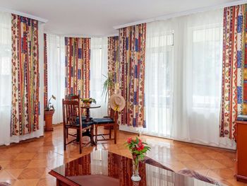 Нет никаких предложений от отеля для гостей: ни коктейл-пати, ни музыкальных вечеров. То есть гости предоставлены сами себе, особенно вечером. А с учетом того, что выбор в ресторане довольно скуден, большинство расходится по другим местам. На завтрак из каш готовили только гречку, хотя можно было бы предложить овсянку, рисовую каши. Персонал довольно нелюбезен. На просьбы откликаются, но сами никогда ничем не интересуются по ходу отдыха. Официанты не очень хорошо подготовлены: могут взять блюдо у гостя, даже не спросив, можно ли его забирать. Непонятно, почему в летние месяцы открытый бассейн закрывают в 18 час.? Зонты у бассейна и на лужайке не закреплены, падают. Помощников нет. Идти на ресепшн в купальниках все же неудобно. Короче, уровень сервиса отсилы на 3+.