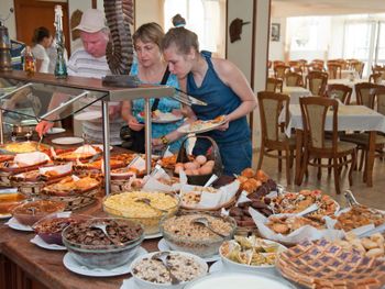 К сожалению, при резервировании booking не дал опцию выбора питания, пришлось платить на месте за обеды/ужины (скорее всего, дороже).