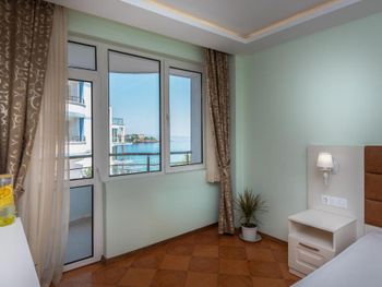 Хотите номер с видом на море - вряд ли вы его увидите. Скорее только стоя из угла балкона.
