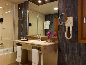 Не понравилась надорванная штора, что заметно только если ее закрыть. Номер был рядом с лифтами, поэтому немного шумно. Отель заявлен как некурящий, но этажом ниже на террасе стояла пепельница и был отчетливый табачный запах. Несмотря на то, что номер двойной, все принадлежности в единственном экземпляре. Ватных дисков, палочек, пилки для ногтей не было. Мини-бар был пустой, даже воды не было.