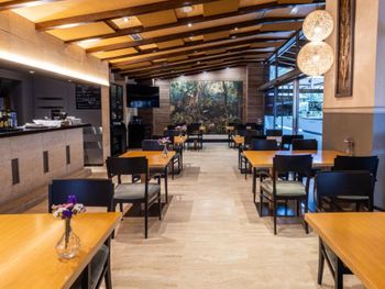 Очень плохая комбинация расположения и сервиса. Мы прибыли в отель ночью и обнаружили, что ни в радиусе 2км, ни в отеле невозможно купить ни воды, ни еды. Единственная опция, которая у нас была - это покупка напитков в мини-баре по очень завышенным ценам. 3,6 евро за 0,5 воды без газа - это самая высокая цена, которую мы видели вообще в Испании.