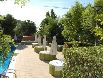 Зона отдыха с бассейном.Хороший завтрак, местонахождение относительно не далеко от города и моря.Чистый номер, каждодневная уборка.Рядом Lidl.