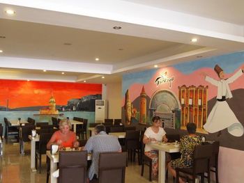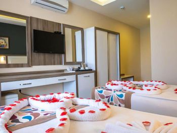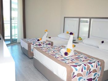 Отель хороший, в номере уютно несмотря на потёртости вещей. Персонал говорит на русском языке, все приветливые. Понравился также хамам с сауной. Отличные массажисты. Окна номера выходили на Memoş Restaurant. В 21.00 начиналась живая музыка. Поют отлично, от мирового рока (Metallica) до русского рока и поп. Поэтому приходилось не спать до 00.00, а петь и танцевать. Также в отеле божественное какао. Все виды коктейлей (алкогольные и без) за отдельную плату. Напитки бесплатно до 23.00. Еда также хороша, много сладостей и сыра. Пляж мин 5-7 ходьбы. Не далеко торговый центр. Спасибо всему персаналу за наш отдых!!!