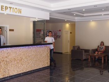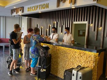 Сотрудники круглосуточной стойки регистрации говорят на немецком, на английском, на русском и на турецком.