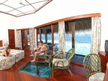 1. При размещении, как обычно это делают при бронировании через букинг, попросили предъявить карту, которой был оплачен отель, что я и сделала. Обнаружилось, что в распечатке у служащего отеля указаны данные совершенно другой Карты. При чем вообще Master Card, а не Visa, которой всю жизнь пользуюсь. Чья это ошибка букинга ли, или служащего отеля - не имею представления. На мои объяснения, что Отель оплачен и предоставление ЧЕКА ОБ ОПЛАТЕ человек просто флегматично произнёс - это НЕ МОИ ПРОБЛЕМЫ, ПРЕДЪЯВИТЕ КАРТУ, КОТОРОЙ ОПЛАЧИВАЛИ. Наверное, нужно иметь хотя бы малейшее уважением в людям после 9-ти часового перелета. Настроение было испорчено, хоть и конфликт быстро улажен после моей сухой фразы ЗВОНИТЕ В КОНСУЛЬСТВО. Сказать, что я была в шоке это не сказать ничего. В остальном претензий к персоналу не было. 2. Мы жили на водной вилле. Виды с террасы прекрасные и это единственный плюс. Мебель старая и обшарпанная, в душе невыносимо пахнет канализацией. Но это, как я потом поняла, вероятно проблема всех водных вилл. Уборка номера 2 раза в день и заключается в развешивании полотенец, заправлении кровати и докладывании шампуней. Песок с пола, который мы принесли на ногах, у нас не выметали. Видели парочку тараканов, слава богу не огромных, а наших, рыженьких)) специально брали виллу на воде, чтобы не было этих тварей, но видимо тараканы живут везде. 3. В последний день, перед отъездом дочь (взрослая) подхватила ротовирус, да такой, что по прилету в Шереметьево нас ждала скорая. 9 часов полёта прошли с темп 39. Будьте осторожны, везде носите антисептик для рук. Что такое перчатки на кухне и на раздаче еды там не знают, плюс жара и влажность благоприятные условия для всех инфекций. В целом отдых, конечно, удался, ничто не может омрачить красоту природы Мальдивских островов. На Мальдивы вернусь обязательно, я влюбилась в это место на земле, но не в этот отель точно.