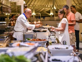 Еда в ресторане спустя неделю прибывания надоедала. Можно было и поразнообразнее меню составить. Мы опоздали в отель на сутки из-за задержки рейса, но за эти сутки деньги всё равно содрали. Мы оплачивали наличкой на месте. Всё в принципе нацелено на то, чтобы с туриста побольше денег содрать.