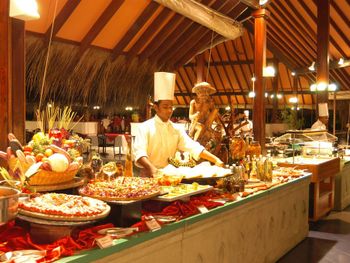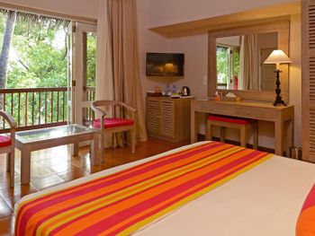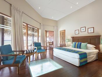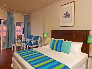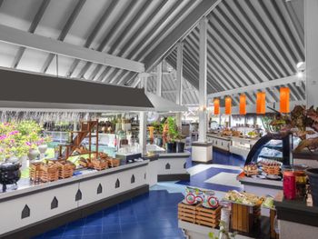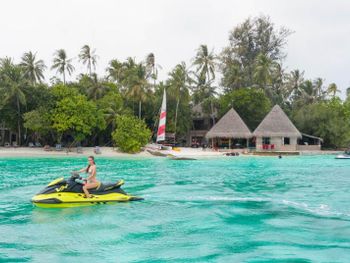 If comparing to Caribbean all-incl for the same price then this hotel and the food are on slightly simpler, more basic side but it is all easily compensated by the ocean. In general, it is fairly hot from 7am (the sunrise is around 6am) and until 4-5pm (the sunset is around 6:30pm) so put beach loungers in shade (plenty of trees) but again most of the time was spent snorkeling and swimming (the main attraction for this island). Stayed at a beach house so cannot say much about water bungalows but the ocean near water bungalows is not that interesting (the best snorkeling and swimming is at the edge of the reef). Non-motorized water sport activities (kayak, sup, catamaran) are available for a fee (~30-50) which are usually free in Caribbean all-incl but again it is still too hot to use them and you can only go around the island. There are motorized activities (jet ski et.c.). The drinks on the all-incl list in the bar are super sweet. Had practically all the drinks on their all-incl list, they are kind of very similar, mango-orange super sweet taste. Mojito and capirinha are not on that list. Один раз был борщ, ну скажем, из всех супов он ближе всеgo к борщу. Кофий вроде вполне сносный, хотя в него добавляют кипяток, когда уже осталось на самом донышке, чем-то напоминает разбавлениe кваса в бочке водой в детстве. А так завтрак стандардный: омлет, оладушки/вафли, йогурт, фрукты (арбуз, дыня, папайя, маракуя, гуава, гранат, апельсины, яблоки), орешки, сухофрукты, геркулес и местная каша, овощи, сыр и есть мясное и картошка и т.д,, хлопья какие-то демпинговые, нема мюслей и гранолы . На обед и ужин: паста, суп (классические мировые и местное), уголок с индийской едой и для любителей острого, рыба и мясо на гриле, один раз были суши. Фрукты, десерт. Вино и пиво на заказ у работников (включено). 90% ходят в шортах/майке, некоторые даже босяком в ресторане. Еда и выбор попроще, чем на карибах, но вполне неплохо.