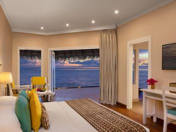 слово уединение, это не про этот отель((. водная вилла обзор со всех сторон, а с соседями по вилле приходилось натягивать полотенце между пати, в противном случае были все шансы бок о бок лежать с соседом (чужим мужчиной). На пляже вилла это аля-Турция в самый сезон, где пустой лежак надо постараться найти на всём побережье, а потом еще постараться его где то разместить, что бы ноги соседа тебе не упирались в голову (или наоборот), потом побегать и найти матрас для лежака….квест сплошной. В ресторане (я бы назвала столовой) столы расположены на 20 см друг от друга со всех сторон, людям приходилось пробираясь к своему столику обтирая задней точкой столы гостей, которые уже принимали еду и это,мягко сказать, было дискомфортно, при том что люди как муравьи перемещались. вино только сладкое (не вкусное), пиво нормальное.