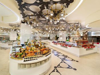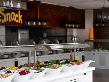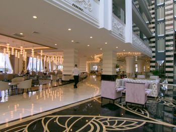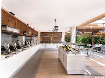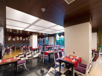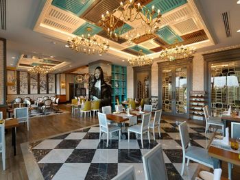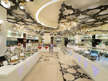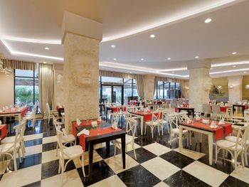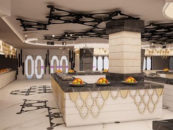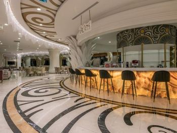Daily breakfast, lunch and dinner are served in buffet style. Guests can enjoy meals from international and local cuisines at the hotel's à la carte restaurants (depending on availability for min 7 nights and more accomodation 1 ala carte is free of charge with pre reservation). Adalya Elite Lara Hotel also offers variety of drinks at the Lobby Bar, Amfi Bar, Pier Bar and Beach Bar.
