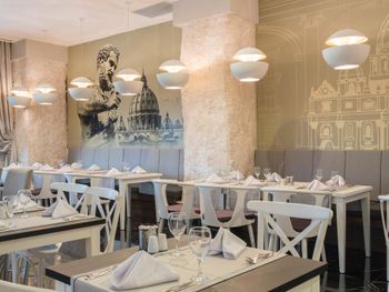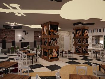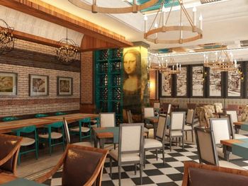 Было много народа в основном ресторане и не очень легко было найти место, если приходили не к началу. Может быть стоило сделать больше столов для двоих человек.