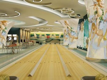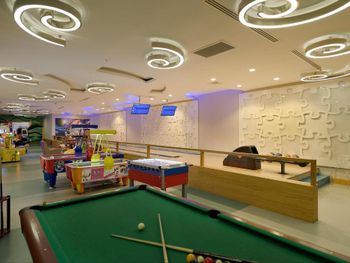 Игровая комната с бильярдом, боулингом и автоматами, подойдет как для детей, так и для взрослых.