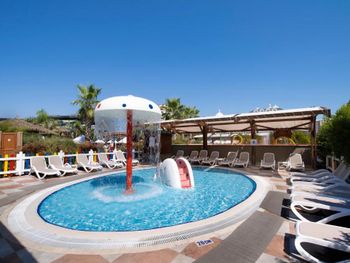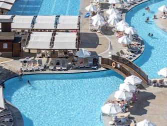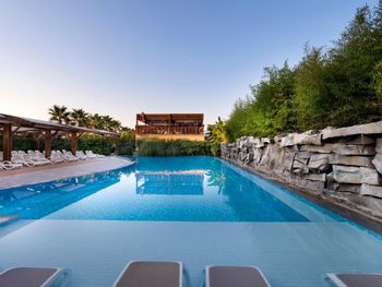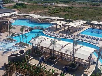 2 подогреваемых открытых бассейна на территории (один только для взрослых), что очень выручило, тк море для меня было прохладное, хотя много людей купалось. Есть еще закрытый, но туда не дошли…