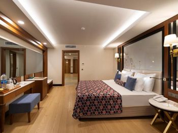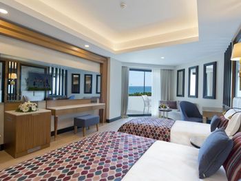 Заселили раньше и сделали апгрейд комнаты по собственной инициативе. Приятно. 2 дня подряд комплименты в комнату (бутылка вина, клубника в шоколаде, огромная тарелка фруктов и тд). Приятно. Комната большая с просторным балконом. Все чисто. Еда разнообразная, огромный выбор. Много алкоголя оригинального. 2 ресторана у бассейнов и пляжа - турецкая кухня отличного качества. Живу в Стамбуле, поэтому смело могу судить о турецкой кухне. Готовят шикарно. Подогреваемые бассейны действительно с теплой водой- и взрослые, и детские. Отель просторный, нет ощущения, что вы, как на вокзале.