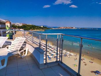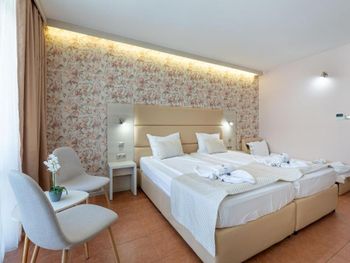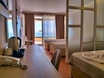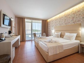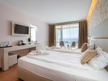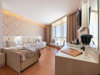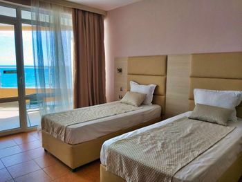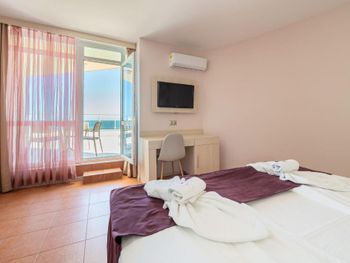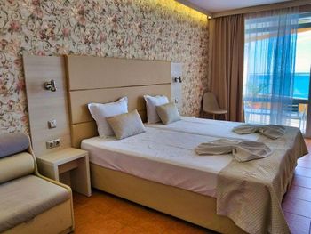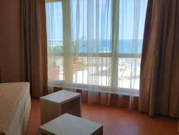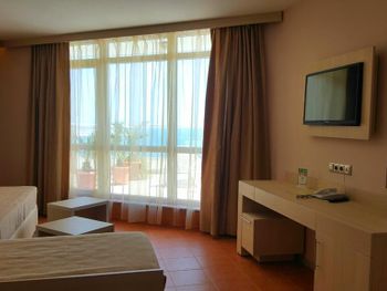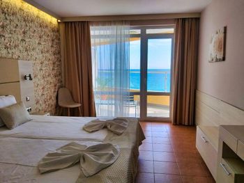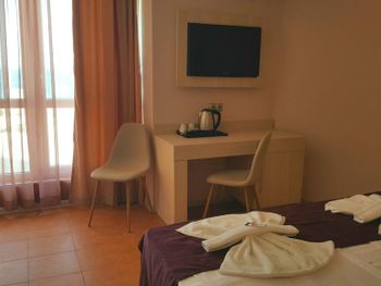 Большие номера, современная обстановка. Отличный вид из окна. Хорошее питание. В пешей доступности старый Несебр.