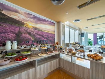 Завтраки неплохие, можно выбрать. Есть и овсянка, и хлопья, и йогурты, и болгарское кислое молоко. Для любителей позавтракать плотно - колбаски, омлеты, сосиски, сыр, брынза. Каждый день арбуз, или дыня, яблоки, апельсины. К чаю/кофе - сладости, выпечка. Голодными не были)))