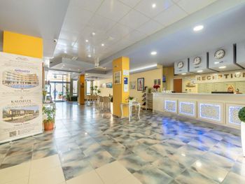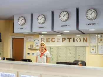 Очень внимательные и добрые девочки на рецепции. Внимательный и вежливый персонал. Мы за помощью всего несколько раз обращались, но помогли без разговоров и без кислого выражения, как это у нас бывает. Все очень приятные! А расположение... За свои деньги это реально Самый лучший вариант. И кормили вкусно. Кстати, очень выгодно опять таки за эти деньги первая лини, завтрак и ужин, сам отель красивый и в номерах красиво. Я рекомендую всем!!!
