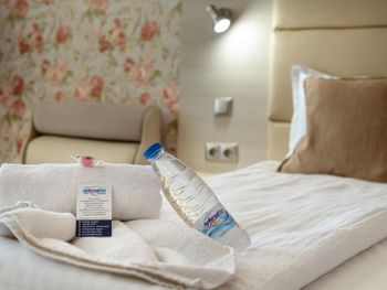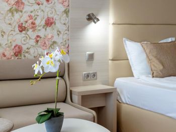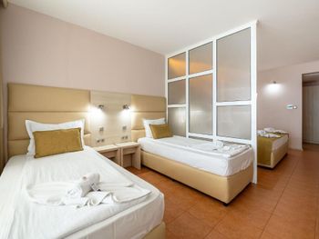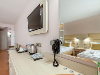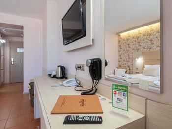 При бронировании я просила тихий номер, но нас поселили в той части отеля окна который выходят на открытую площадку ресторана соседней гостиницы. По вечерам там развлекательная программа для гостей с громкой музыкой. Для нас это было очень не приятно. При этом нам это преподнесли как бесплатное улучшение категории номера, т.к. там частично было видно море с балкона номера. В номере не было ложки для обуви. Это конечно мелочь, но пожилому человеку трубно обуваться без такого приспособления. Я спросила у администратора об этом - она ответила, что у них такого вообще нет. В 4х звездной гостинице так не отвечают, а говорят - мы постараемся решить вашу проблему и решают.