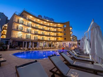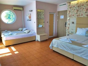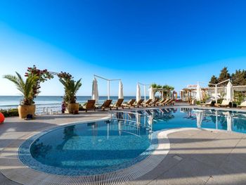 Отель на берегу моря, прекрасный пляж, лежаки уже несколько староваты в конце сезона. Завтрак отлично, ужин - малый выбор блюд.