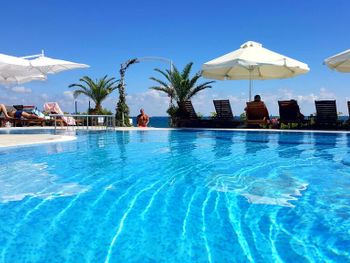 Зонтики возле бассейна опрокидывало ветром и полежать в тени было проблематично(
