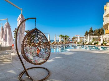 Отличный отель на берегу моря, очень чистый! Уборка номера ежедневно. Всё уютно, лежаки, качели, бассейн. Персонал отзывчивый, завтраки вкусные. Пляж возле отеля хороший. Нам очень понравилось, уезжать не хотелось.