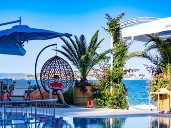 Отличное расположение, с удобным бассейном, на берегу моря, с видом во внутренний двор или на море, с чистым пляжем и бесплатными шезлонгами и зонтиками. Вкусные и разнообразные завтраки. В номерах также предоставляют тапочки, сумки и полотенца для пляжа.