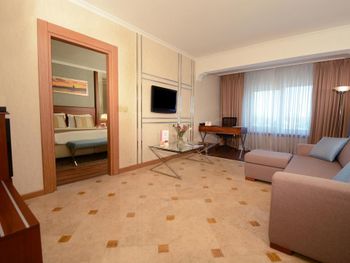 Цены не соответствует самому отелю. Я не спорю ваш отель был в своё время очень крут но это время прошло. Вашему отелю не знаю кто дал 5 звёзд, но он его явно не заслуживает. Всё старое , много потёртости и поломок . Прошу заняться своим отелем и привести его в порядок. 5 звёзд отель и ваши номера не соответствуют к большому сожалению. Это была моя последняя поездка в ваш отель. Пластиковые душевые кабиные тяжело встретить в 3 звёздочном отеле с встроенной ванной на 40 литров воды