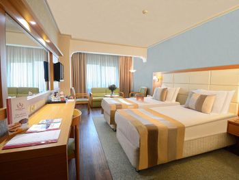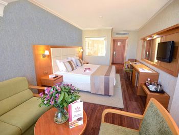 Старая пропахшая сигаретами гостиница. От 5* тут не осталось ничего- потасканные номера, вонючие ковры, дикая слышимость. Еда тоже не на высоте, что для Турции это нонсенс! Не понимаю, из чего сложился высокий рейтинг.